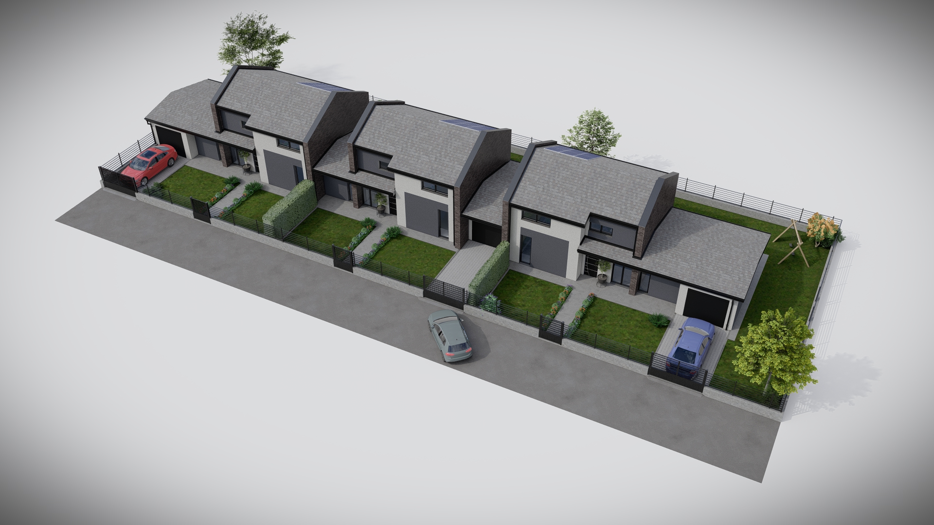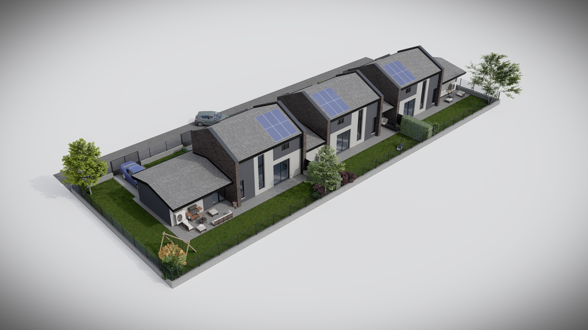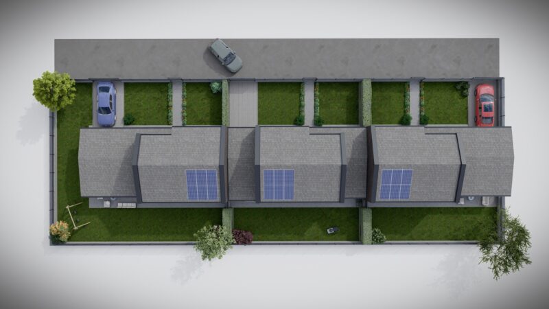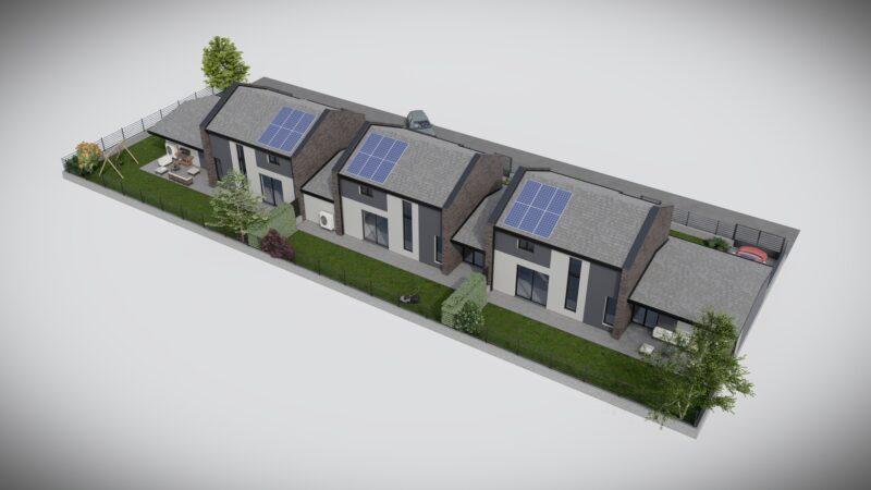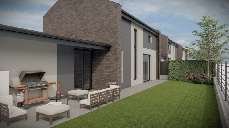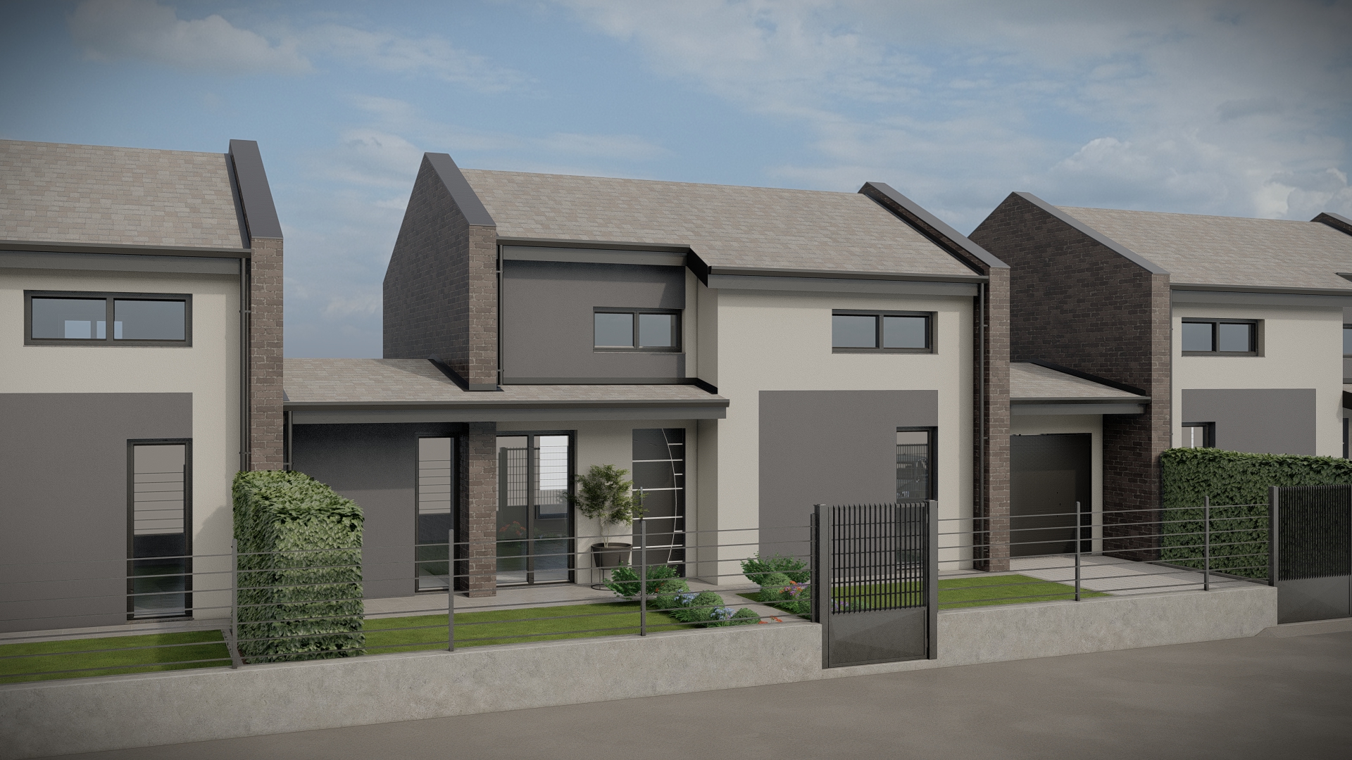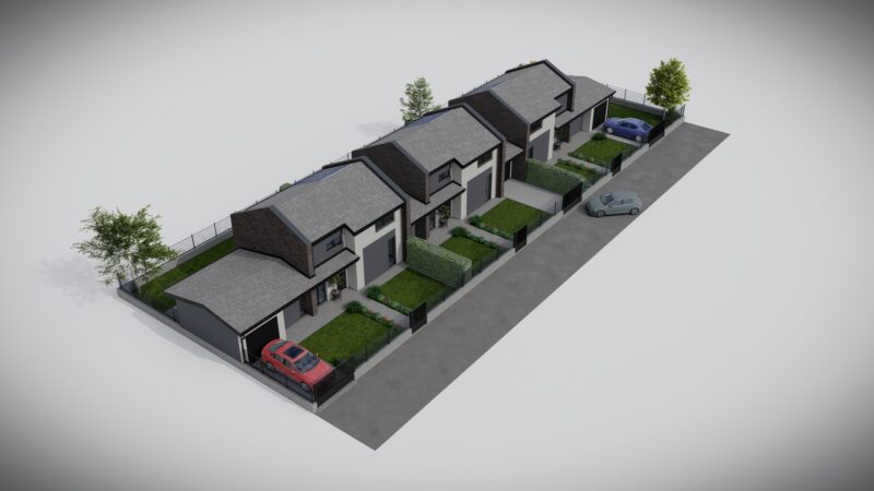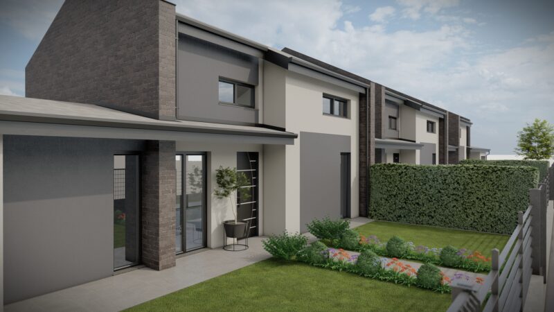 Progetto preliminare di un complesso trifamiliare dallo stile moderno e minimale con dettagli e finiture di pregio.