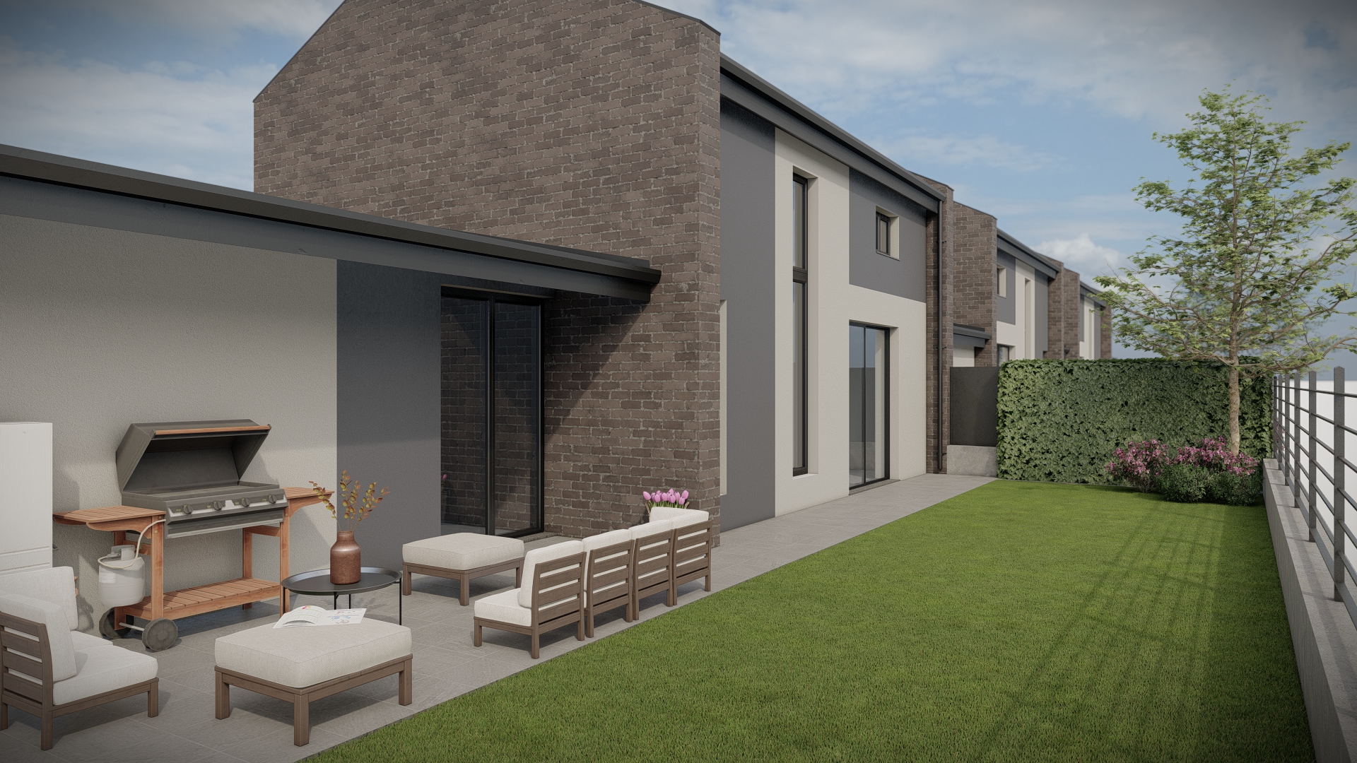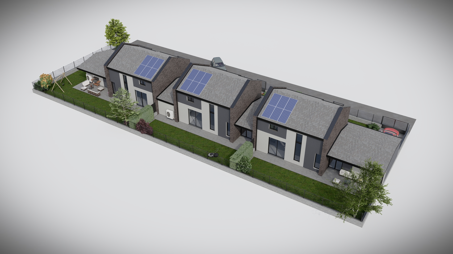 Autorimessa ed ampio giardino privato per ogni unità.
