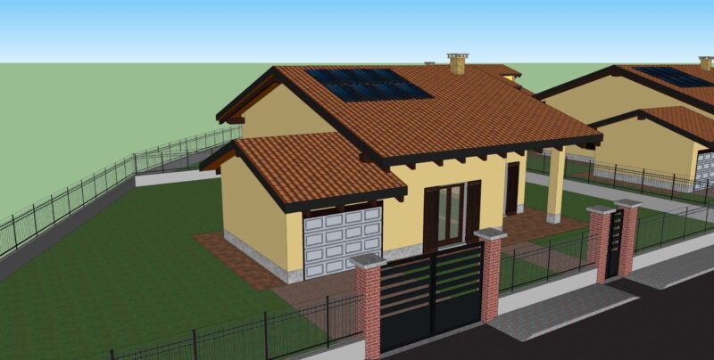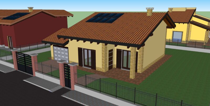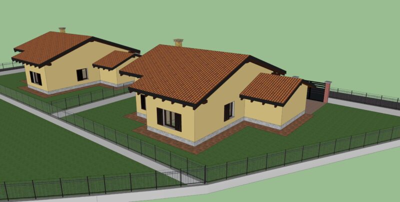 Realizzazione di villette unifamiliari libere su 4 lati composte da soggiorno, cucina, bagno, 2 camere e disimpegno al piano terreno, locale mansardato usabile (grezzo) con locale caldaia, soppalco su zona soggiorno con scala a vista dal soggiorno (finito nella zona a vista), autorimessa esterna fuori terra, finiture di pregio personalizzabili, impianto di riscaldamento a radiatori con caldaia a condensazione, pannelli solare termico e impianto pannelli fotovoltaico, ampio giardino. Su richiesta possibilità ampliamenti e modifiche interne. Edificio in classe B